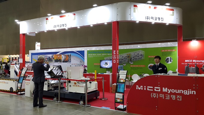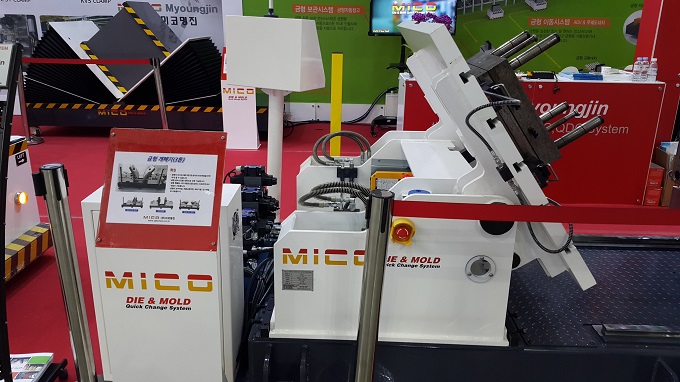 미코명진은 SIMTOS에서 금형개폐기를 선보여 관람객들의 관심을 모았다.
