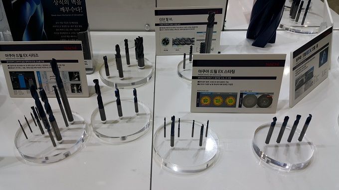 한진 T&E에서 수입하는 제품 중 나치후지코시(NACHI-FUJIKOSHI CORP.)의 아쿠아 드릴(EX FLAT 시리즈)은 구멍 가공에 사용되는 플랫 드릴(Flat Drill)로, 다기능 드릴이 6품종 294사이즈로 확대되었고, 절삭면의 스폿 페이싱, 탭 막힘 구멍 가공 등이 1개로 실행된다. 그리고 아쿠아 EX 코팅에 의한 내열성, 내마모성을 향상시켜 수명이 길어졌으며, 더블 마진 채택에 의해 안정 가공이 가능하고 구멍 정밀도가 향상된다.