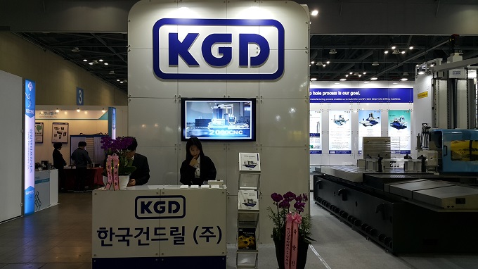 30년 이상 최적의 기계 시스템과 툴을 제공해 온 한국건드릴(KGD)은 SIMTOS 2018에 참가해 고효율의 건드릴 기계들을 선보였다. 그중 대형 금형 심공 가공용 컬럼 타입의 건드릴 기계인 KHG 시리즈는 주축 회전수, 절삭이송속도, 절삭유압 등 필요한 절삭 조건을 최적의 상태로 선정할 수 있다. 워크 테이블은 중량 가공물 적재가 가능하며 냉각수 홀 가공, 이젝터 핀 홀 가공이 용이하다. 동일 가공 소재에 홀 깊이가 다른 다수 개의 홀 가공에서도 효율적인 양산 가공과 단품 가공이 가능하다.