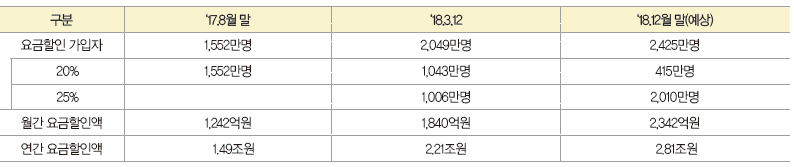 한편 요금할인율 상향 시행 약 6개월 만에 25% 요금할인 순 가입자 수도 1,000만명을 돌파하였다.