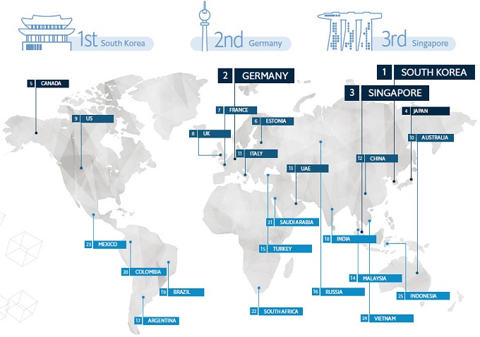 한국, 독일 및 싱가포르 외에도, 이러한 변화의 물결을 수용할 수 있는 ARI 지수의 상위 10개국에는 일본, 캐나다, 에스토니아, 프랑스, 영국, 미국 및 호주 순으로 랭크됐다.