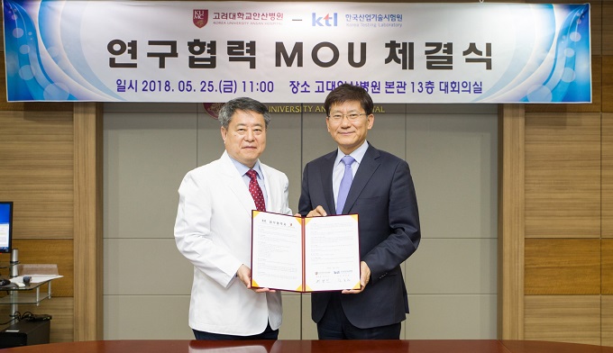 종합시험인증기관 한국산업기술시험원(이하 KTL)은 지난 5월 25일 고려대학교안산병원(병원장 최병민)과 의료산업 연구 및 사업화 등 다양한 방면에서 상호협력을 약속하는 업무협약을 체결하였다.