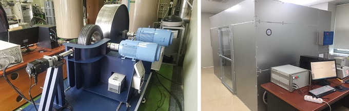▲실제 타이어 마모 시뮬레이터(왼쪽)와 시뮬레이터가 설치된 챔버