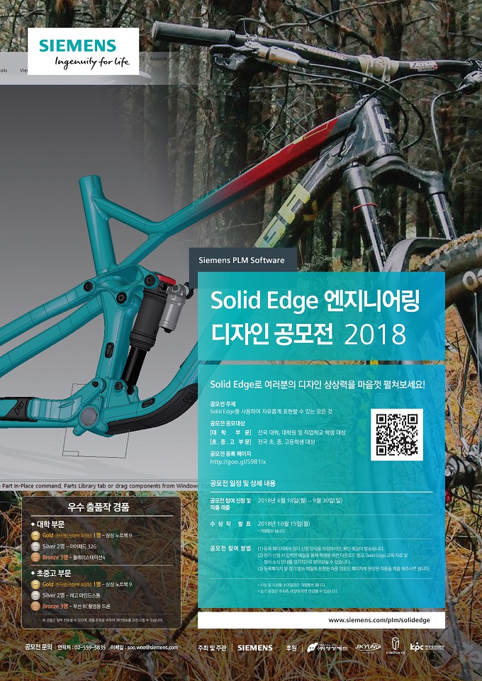 PLM(제품수명주기관리) 소프트웨어 및 서비스 공급기업인 지멘스 PLM 소프트웨어는 전국 학생을 대상으로 Solid Edge 엔지니어링 디자인 공모전 2018을 개최한다고 밝혔다.