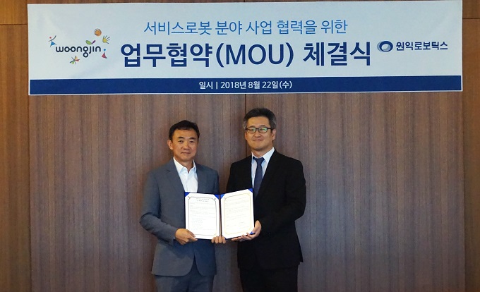웅진(대표이사 이수영)과 원익로보틱스(대표이사 장경석)가 로봇 서비스 분야의 기술 협력 및 공동 영업 마케팅을 진행하기로 했다. 양사는 지난 22일 원익로보틱스 본사에서 서비스 모델 및 인프라를 공동으로 활용할 수 있는 상호협력 양해각서(MOU)를 체결했다.