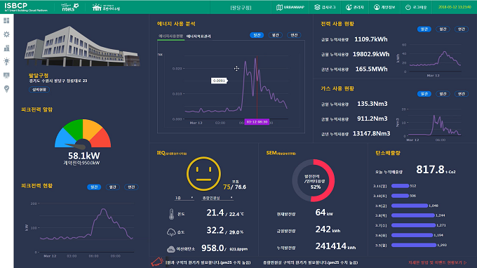 지능형 사물인터넷 기반 공공빌딩 환경 및 에너지효율화 서비스는 AI를 통한 효율적 빌딩 관리, 기존 빌딩 자동화 시스템(BAS)과의 호환 뿐만 아니라 도시 에너지 경영이 가능하게 해준다.