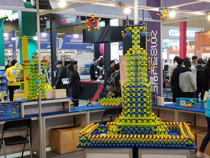 토포보코리아가 10월 10일부터 13일까지 나흘간 킨텍스에서 개최하는 ‘2018 로보월드’에 참가해 세계 최초의 로봇블록인 'TIMBO 로봇'을 선보였다.