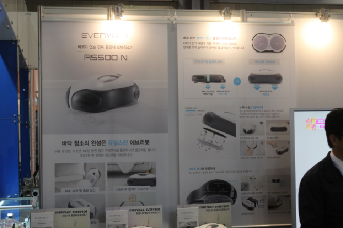 에브리봇은 이번 전시회에서 에브리봇 RS500을 소개했다. 에브리봇 RS500은 버튼 한번만 누르면 스스로 물걸레 청소를 완벽히 소화하는 듀얼스핀 물걸레 로봇청소기다. 이 제품과 더불어 에브리봇은 RS500N과 RS700 두 모델을 함께 소개했다. 에브리봇 RS500N은 기존 RS500 모델의 단점을 보완하고 성능을 개선하여 2018년에 새롭게 출시된 제품이다. 에브리봇 RS700은 고급스러운 디자인과 기능 및 성능을 개선한 프리미엄 물걸레 로봇청소기다.