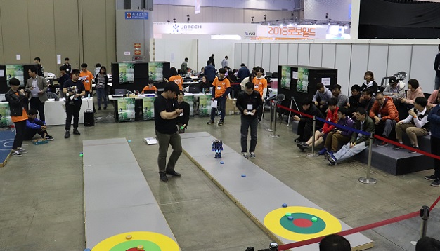 지난 10월 10일부터 4일간 킨텍스에서 열린 ‘2018 로보월드’에서는 로봇들의 컬링 경기가 펼쳐졌다. 참가자들은 컬링하는 로봇을 직접 만들어 경기에 참여했다.
