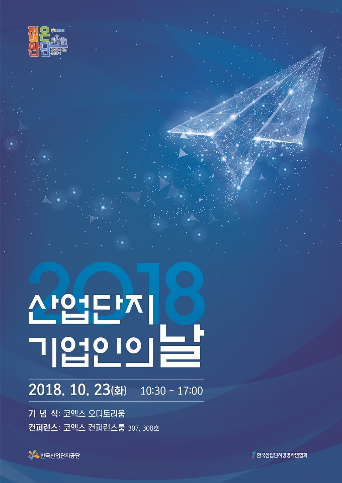 한국산업단지공단(이사장 황규연, 이하 ‘산단공’)과 (사)한국산업단지경영자연합회(회장 김기원, 이하 ‘산경련’)는 지난 23일 코엑스에서 산업단지 입주기업, 정부, 국회, 공공‧유관기관 관계자 등 1,000여명이 참석하는 ‘2018 산업단지 기업인의 날’ 기념행사를 공동 개최했다.
