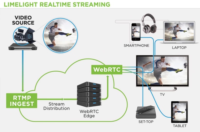 라임라이트 리얼타임 스트리밍(Limelight Realtime Streaming)은 전세계 어디에서나 시청자들에게 1초 내에 웹브라우저로 방송 품질과 동일한 고품질 비디오를 스트리밍할 수 있도록 지원하는 업계 최초의 솔루션이다. 리얼타임 스트리밍은 업계 표준의 웹 브라우저 기반 통신 방식인 WebRTC 비디오 포맷을 이용하며, UDP(사용자 데이터 전송 프로토콜)을 통해 안정적인 방송 품질의 실시간 비디오 스트리밍을 제공한다.