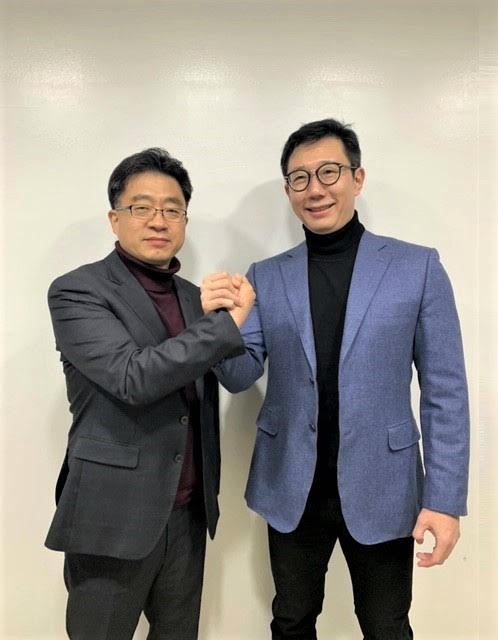 ▲씽크라이온 정정용 대표(좌)와 비즈모델라인 김재형 대표가 제휴를 맺고 기념촬영하고 있다.