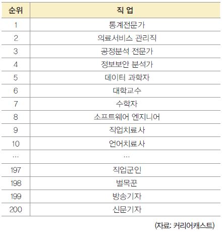 우리나라와 비교해 미국은 ICT전문가가 대세를 이루고 있다. 제4차산업혁명 시대와 어울리는 직업들이다.