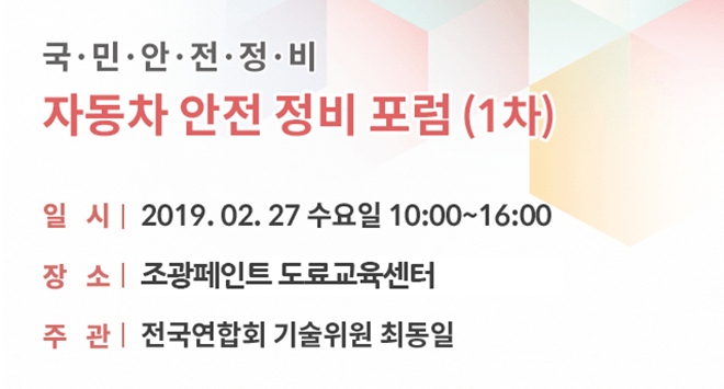 전국자동차검사정비사업조합연합회 최동일 기술위원은 '제1차 자동차 안전 정비 포럼'을 오는 27일 국가인적자원개발 컨소시엄 교육기관인 조광페인트 도료교육센터에서 개최한다고 밝혔다.
