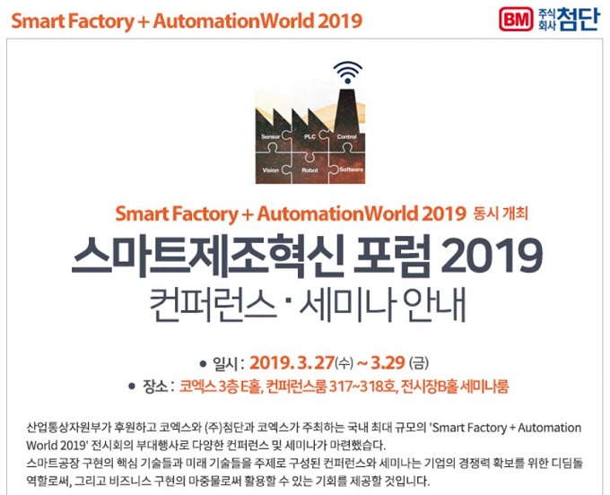 첨단과 첨단산업기술연구소가 주최하는 스마트제조혁신포럼이 3월 27일(수)부터 29일(금)까지 3일간 코엑스 컨퍼런스룸에서 개최된다.