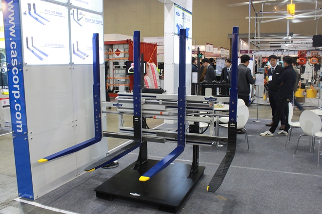4차산업혁명의 최신기술이 반영된 물류산업의 미래를 가늠할 '국제물류산업대전 2019(KOREA MAT 2019)'가 지난 16일 일산 킨텍스에서 개최됐다. 캐스케이드는 초경량 페이퍼 롤 클램프, 멀티 로드 핸들러, 롤러 플래튼 등의 솔루션을 선보였다.