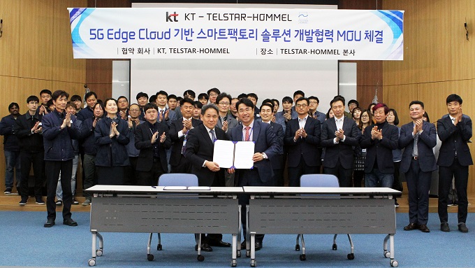 KT(회장 황창규)는 텔스타홈멜(대표 임병훈)과 경기도 평택시에 위치한 텔스타홈멜 사옥에서 ‘5G Edge Cloud 기반 스마트팩토리 솔루션 개발협력 MOU’를 체결했다고 19일 밝혔다.