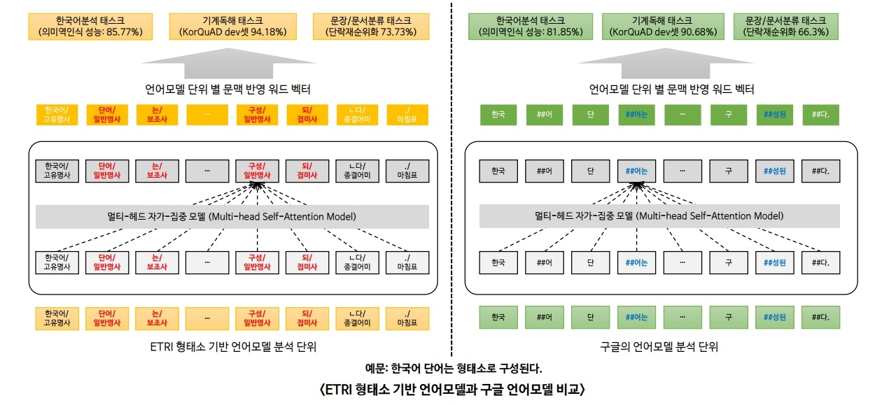 이에 ETRI는 연구진이 한국어의 의미 최소 단위인 형태소까지 고려해 한국어 특성을 최대한 반영한 언어모델을 만드는데 심혈을 기울였다고 밝혔다.