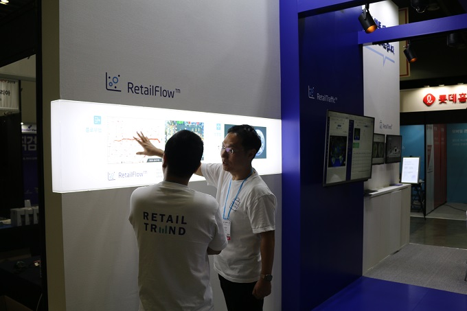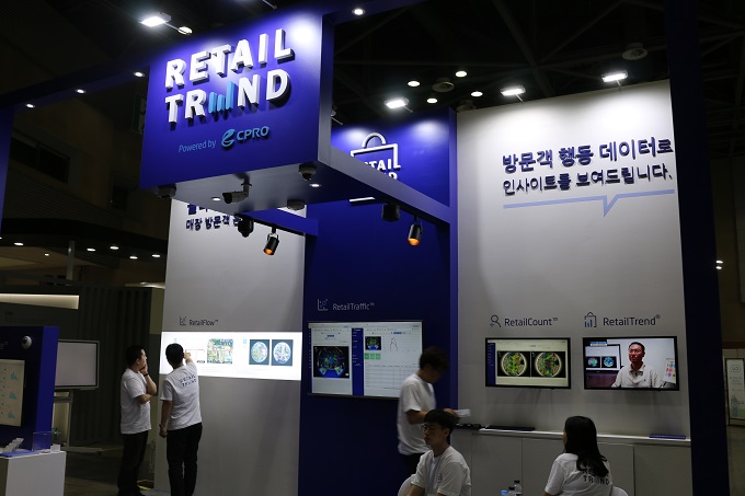 씨프로는 매장 고객분석 서비스 '리테일트렌드'를 선보였다. 지능형 영상센서를 통해 매장 외부의 유동인구 계수, 매장에 방문한 고객들의 방문객 계수, 구매전환률 분석, 체류시간 분석, 관심영역 분석 등 매장 마케팅 분석을 위한 지표들을 제공한다.