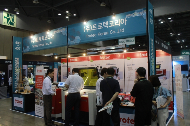 (주)트로텍코리아는 이번 전시회에 참가해 Speedy300 및 Speedy360 장비를 전시했다. Speedy 트로텍 레이저는 전세계 메이커스페이스 및 필름업체, 플라스틱업체, 종이후가공 업체, UV업체, 공공기관에 가장 많이 판매되고 있으며, 타사대비 다양한 기능을 제공해 그 성능을 인정받은 제품이다.
