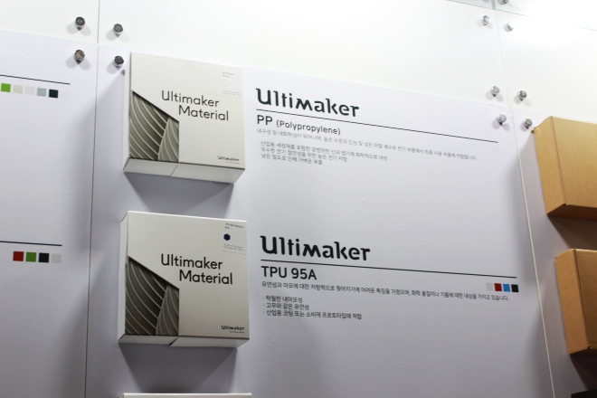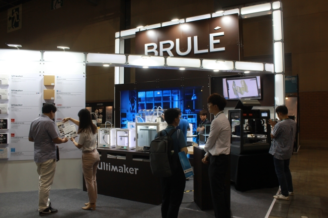 3D 전문기업인 브룰레코리아는 이번 전시회에 참가해 Ultimaker 사의 3D프린터 라인업과 필라멘트, 제작물을 선보였다. 부스에는 자사가 보유한 Ultimaker 3D프린터 라인업을 전시했으며, 부스 벽면에는 Ultimaker 필라멘트인 PLA, ABS, 나일론 등의 소재가 진열돼 있었다.