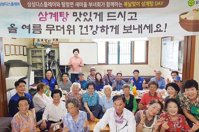 삼성디스플레이는 지난 2014년부터 임직원 2,700여 명이 참여한 가운데, 약 30개 자매마을 1만명(누적) 주민을 대상으로 삼계탕 DAY를 진행해 왔다.