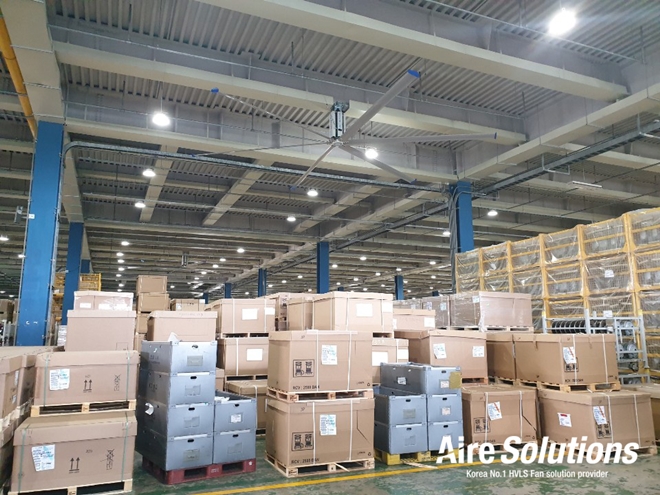 스마트솔루션즈가 이번에 공급한 산업용 실링팬은 현장에 최적화된 지름 7.3m 크기의 저소음 공장 실링팬으로 기존의 산업용 공조시스템과 함께 대량의 공기를 순환 시켜 쾌적한 실내 및 냉난방비를 절감할 수 있다.