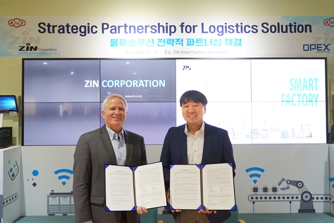 스마트 팩토리 솔루션 전문기업 진코퍼레이션이 지난 11일 경기도 안성에 위치한 글로벌 스마트 팩토리 쇼룸에서 미국 물류 자동화 전문기업인 오펙스(OPEX Corporation)와 공식 리셀러 계약 및 한국, 아시아 지역 스마트 팩토리 사업 전개를 위한 전략적 파트너십을 체결했다고 밝혔다.