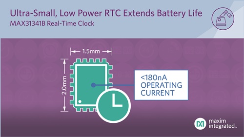 정확한 시간 기록을 위해 마이크로컨트롤러(MCU)를 이용하는 시스템은 웨어러블 분야에서 배터리 수명 낭비 문제가 발생할 수 있다. 특히 소형 배터리 시스템은 에너지 효율이 가장 떨어진다. 맥심 나노파워 RTC는 MCU의 시간 기록 기능을 제거해 절전 주기에서 에너지를 더욱 절감하고 배터리 실행 시간을 연장시킬 수 있다.