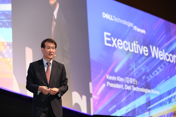 김경진 총괄사장이 827일 코엑스에서 개최된 델 테크놀로지스 포럼 2019에서 우리의 디지털 미래라는 주제로 환영사를 하고 있다.