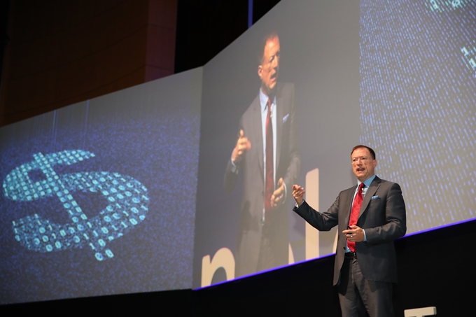 존 로즈(John Roese) EMC 최고기술책임자(CTO)827일 코엑스에서 개최된 델 테크놀로지스 포럼 2019에서 리얼 트랜스포메이션(Real Transformation)’라는 제목으로 기조연설을 하고 있다.