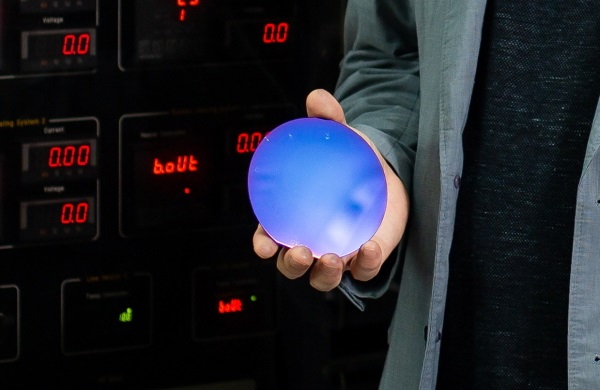 ▲박막 소재가 증착된 실리콘 웨이퍼