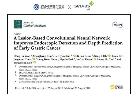 인공지능 전문기업 셀바스 AI(KOSDAQ108860)와 강남세브란스병원 소화기내과 연구팀이 조기 위암 진단 및 예측에 대한 의료 영상 활용 방안을 주제로 공동으로 작업한 논문이 국제저널 Journal of Clinical Medicine(JCM)에 게재됐다고 8일 밝혔다.