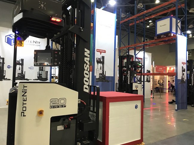 ▲ 포테닛 부스에서 공개된 무인지게차 ‘SCV-ABR20SP-7’