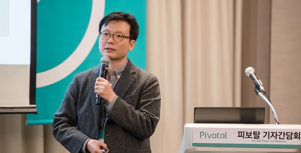 ▲한국 데이터 비지니스 현황에 발표하고 있는 피보탈코리아 박춘삼 전무