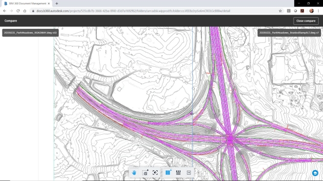 ▲이전 파일 관리, 복원 및 비교 등 BIM 360 Design의 Civil 3D 파일 비교 및 버전 컨트롤 지원
