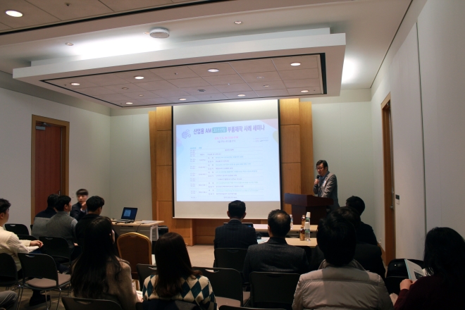 14일인 당일은 산업용 AM 3D프린팅 부품제작 관계자 및 개인 50여명이 참석했으며, 세미나는 기조연설을 비롯해 각각 두 개의 국내 및 해외 사례 발표로 이어졌다.