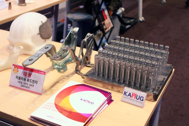 한편, 세미나장 외부에는 협회에서 추진한 협업 사례에서 3D프린터로 제작된 부품이 전시됐다. 여기에는 지난 '제3회 DfAM(적층제조를 위한 디자인) 경진대회'에서 대상을 수상한 자동차용 후드힌지(hood hinge)가 전시돼 참석자의 눈길을 끌었다.