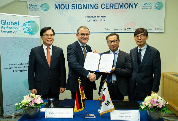 KOTRA(대한무역투자진흥공사)가 11월 12일 독일 프랑크푸르트에서 ‘글로벌 파트너링 유럽 2019’ 사업을 개최했다. 이번 행사는 유럽시장 진출 종합 플랫폼을 지향하며 글로벌 파트너링 수출상담회, 수입처 다변화 상담회, 투자 양해각서(MOU) 체결로 구성했다.