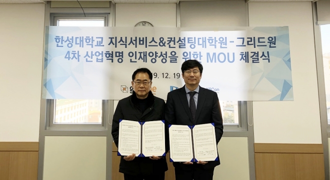 인공지능 솔루션 전문기업 그리드원은 한성대학교 지식서비스&컨설팅대학원과 RPA 및 인공지능 컨설팅 인력 양성을 위한 전략적 업무 협약(MOU)을 체결했다고 23일 밝혔다.