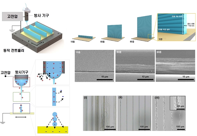 기존에 한 층 밖에 인쇄하지 못했던 대부분의 근거리 전기 방사 기술과 달리, 높이가 두께의 72배에 달하는 나노 벽을 제작한 것이다.