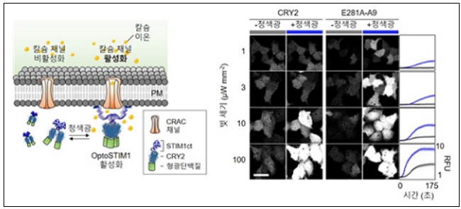 세포 내 칼슘 양이 부족해지면 인지장애, 심장부정맥 등 다양한 질환으로 이어질 수 있다. 허원도 교수 연구팀은 이전 연구에서 세포에 빛을 비춰 세포 내 칼슘 농도를 조절하는 옵토스팀원(OptoSTIM1) 기술을 개발한 바 있다.