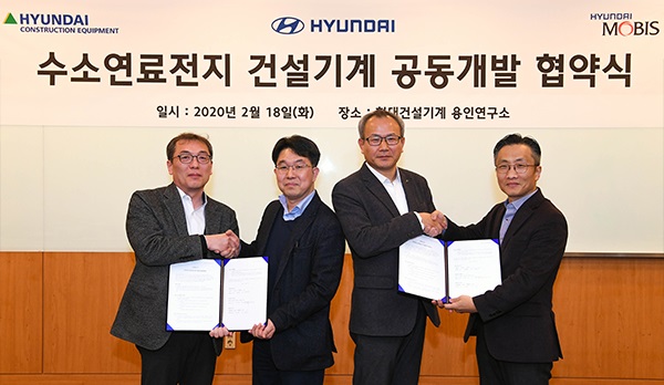 현대건설기계는 2월 18일 경기도 용인시 마북연구동에서 현대자동차, 현대모비스와 함께 수소지게차 및 중대형 수소굴삭기 개발에 나선다는 내용의 ‘수소연료전지 건설기계 공동개발 협약’을 체결했다고 밝혔다.