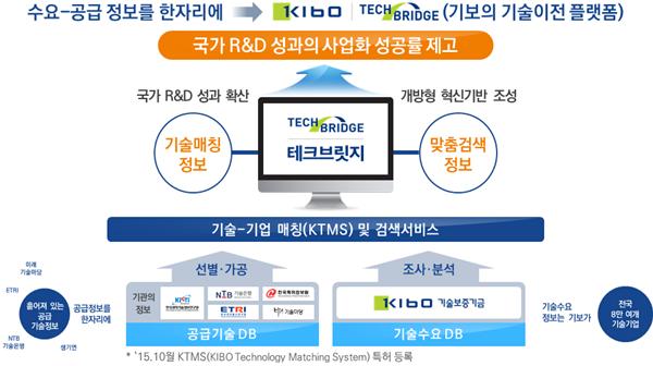 테크-브릿지는 기술보증기금에서 운영 중인 온라인 기술유통 플랫폼으로, 대학·연구소의 보유기술(약 38만건)을 기보 전국 영업망(67개)를 활용하여 수요기술 매칭을 실시한다.