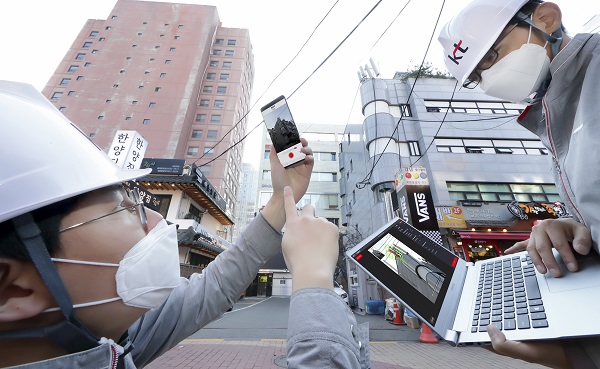 KT가 멀리 떨어져 있는 5G 기지국(안테나) 구축 정보를 증강현실(AR) 기술로 측정하는 솔루션 ‘기지국 트윈’을 개발 완료 했다고 3월 19일 밝혔다.