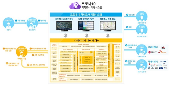 코로나19 역학조사 지원시스템의 기반이 되는 스마트시티 데이터 허브 플랫폼은 대규모 도시데이터 분석 도구로, 교통·에너지·환경·안전 등 도시 내 각 분야의 다양한 빅데이터를 실시간 분석해 4차산업 시대에 필수적인 융·복합 데이터를 창출하고 스마트시티 서비스 구현에 활용될 예정이다.