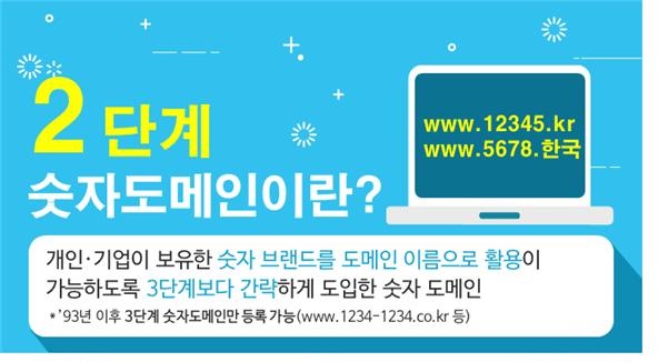 한국인터넷진흥원(이하 KISA)은 2020년 4월 1일부터 2단계 숫자도메인 등록을 본격적으로 시행했다. 2단계 도메인은 ‘co, go, or’과 같은 중간 단계가 없는 체계를 말한다. 예를 들면 ‘kisa.kr’, ‘한국인터넷진흥원.한국’, ’1234.kr’ 등이다.