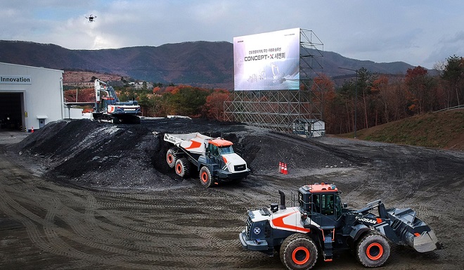 두산인프라코어는 지난해 11월 충남 보령 성능시험장에서 컨셉트-엑스 시연회를 열고 첨단 무인·자동화 기술이 집약된 미래 건설현장의 모습을 제시한 바 있다.