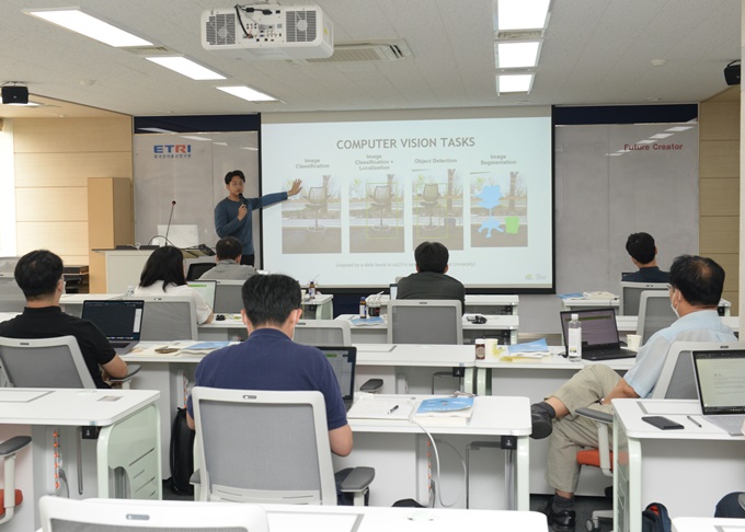 ETRI는 기계학습 및 AI분야 글로벌 선도기업인 엔비디아(NVIDIA) 코리아 및 아마존웹서비스(Amazone Web Services, 이하 AWS) 코리아와 공동으로 AI 교육과정을 개설해 AI 아카데미 원내교육을 6일부터 시작했다고 밝혔다.