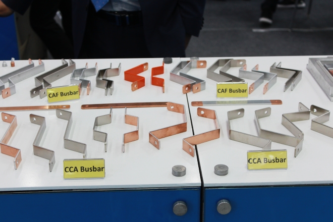 CCA busbar는 구리와 알루미늄을 열간압연 또는 연속주조방식으로 표피층을 구리로 해 전기 및 전력용 전도체로 사용하는 부품이다.